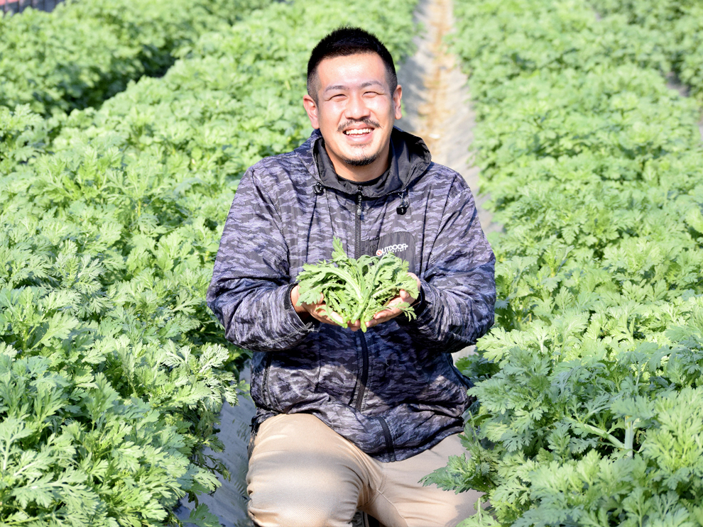 大きくなりすぎないサイズのものを収穫しているため葉が柔らかく、豊かな香りとほのかな苦味が特徴です。関西だけではなく、どの地域の方でも食べやすい自慢の春菊です。