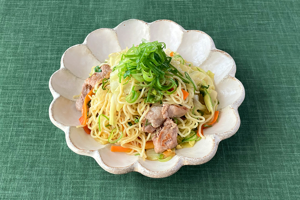 九条ねぎをたっぷりと使った塩焼きそばのレシピです。お好みの野菜と豚肉を加えてボリュームもアップ。野菜は手早く炒めて程よいシャキシャキ感を残すのがおいしさのポイントです。